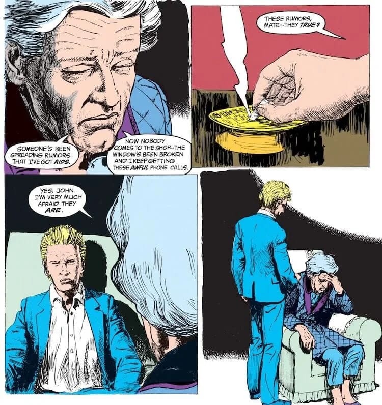 John learns that his friend Ray has AIDS. [Hellblazer #6 (June 1988), art by John Ridgway.]