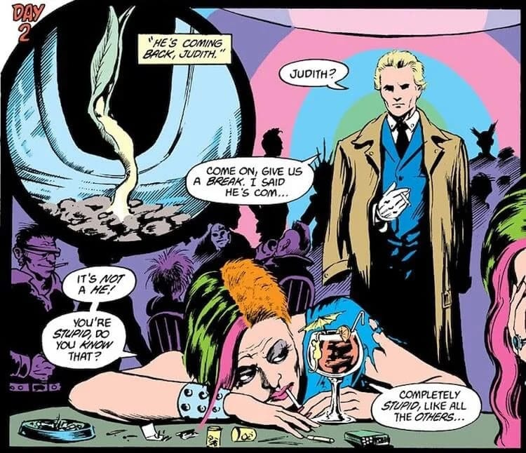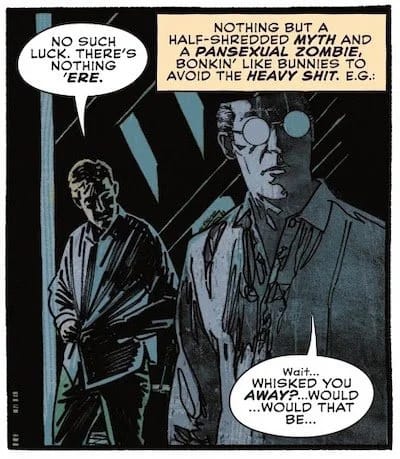 Now on the one hand, all the terrible things that happen to gay characters in Hellblazer are, in fact, meant to be understood as terrible things. John is consistently horrified by them, and intervenes when he can. And it’s worth remembering again that this series began in 1988 and the Code wouldn’t officially permit queer characters until 1989; even though Hellblazer wasn’t submitted for CCA approval, most comics were. To depict queer tragedies explicitly and sympathetically was in fact progressive for a mainstream comic at the time.
