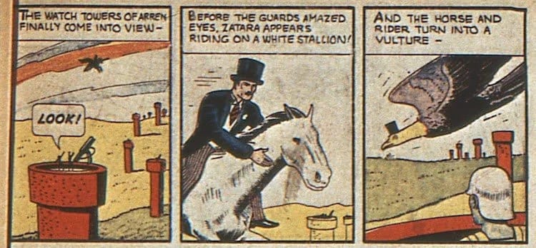 Most importantly for our purposes, it also featured Zatara, the Master Magician. Current comics fans will be familiar with his daughter, Zatanna Zatara, the backwards-speaking magician who has been kicking about the DCU as a fan favorite since 1964. But her father, Giovanni “John” Zatara (though his first name wouldn’t be given for decades), has been around since Action Comics #1, the same as Superman.